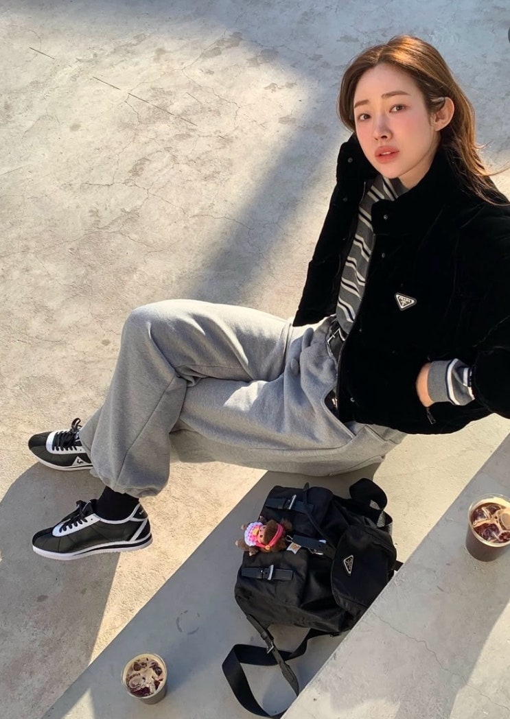 데일리룩 여신 차정원 패션 분석, 프라다 패딩과 백팩