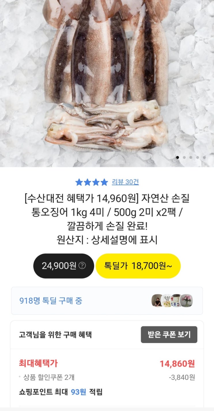 식비방어 수산대전 금징어(손질) 1kg 4미 14860원딜