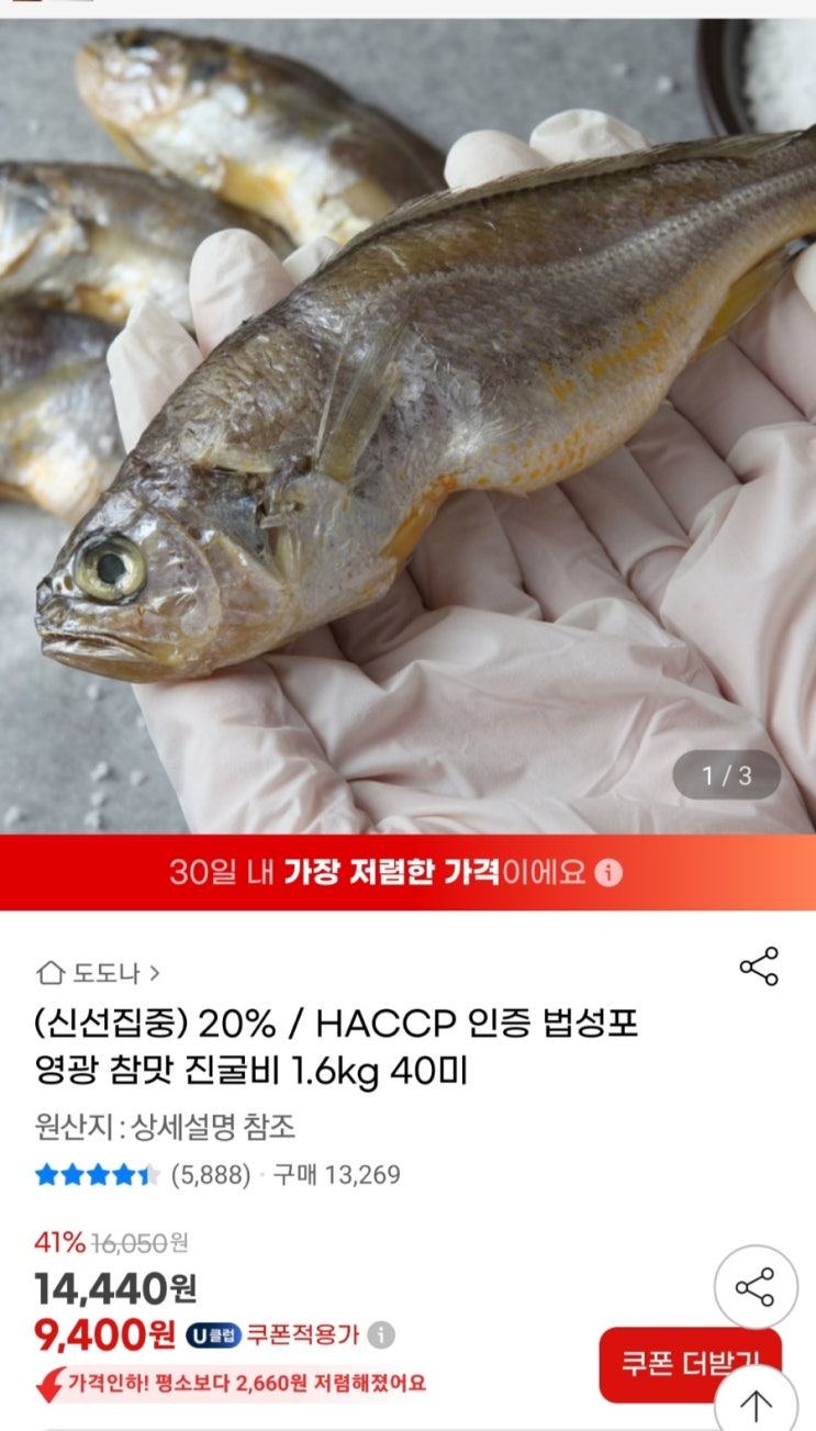 식비방어 영광 진굴비 40미(1.6kg) 9400원딜