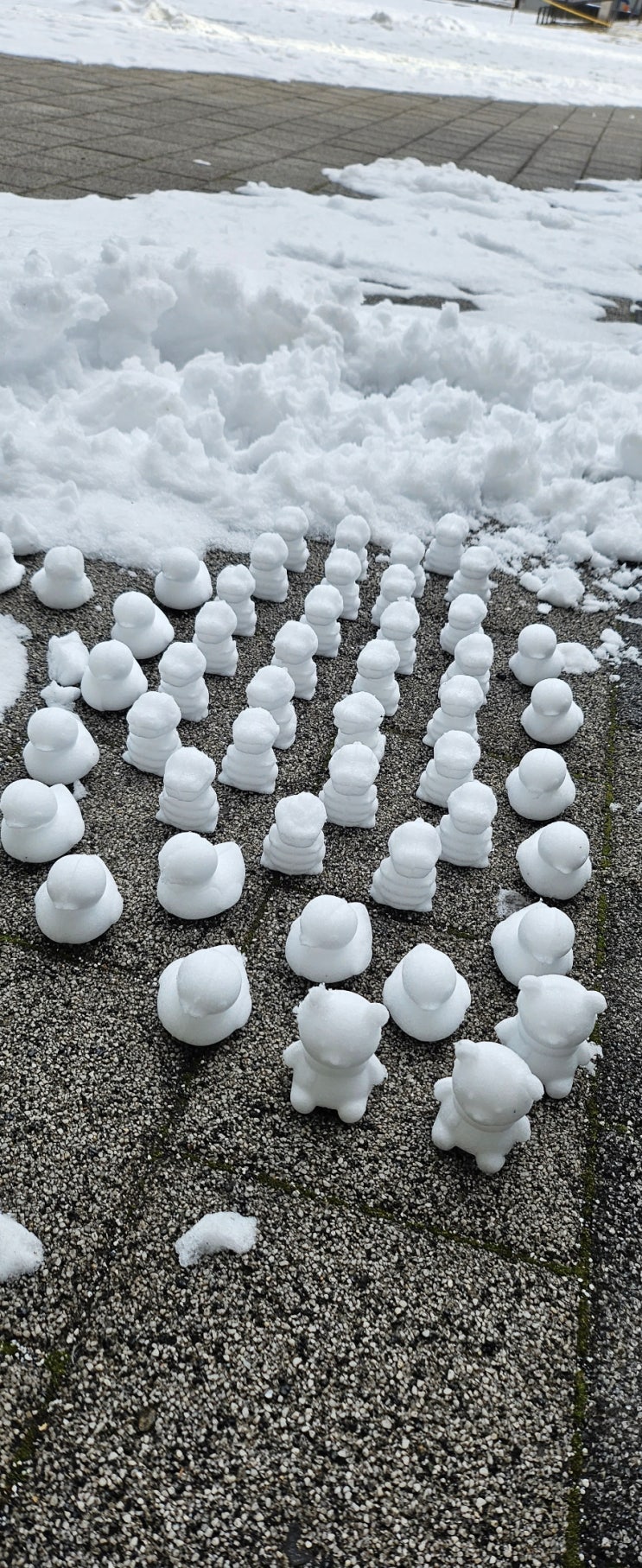 길바닥에 진열해놓은 예쁜 눈 오리들 낭만쟁이들