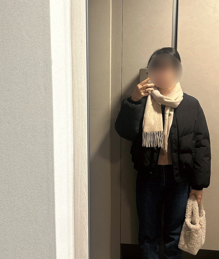 17주차 임산부 출근룩(시에 모니카 울 브이넥, 룩캐스트 청바지, 써스데이아일랜드 패딩)