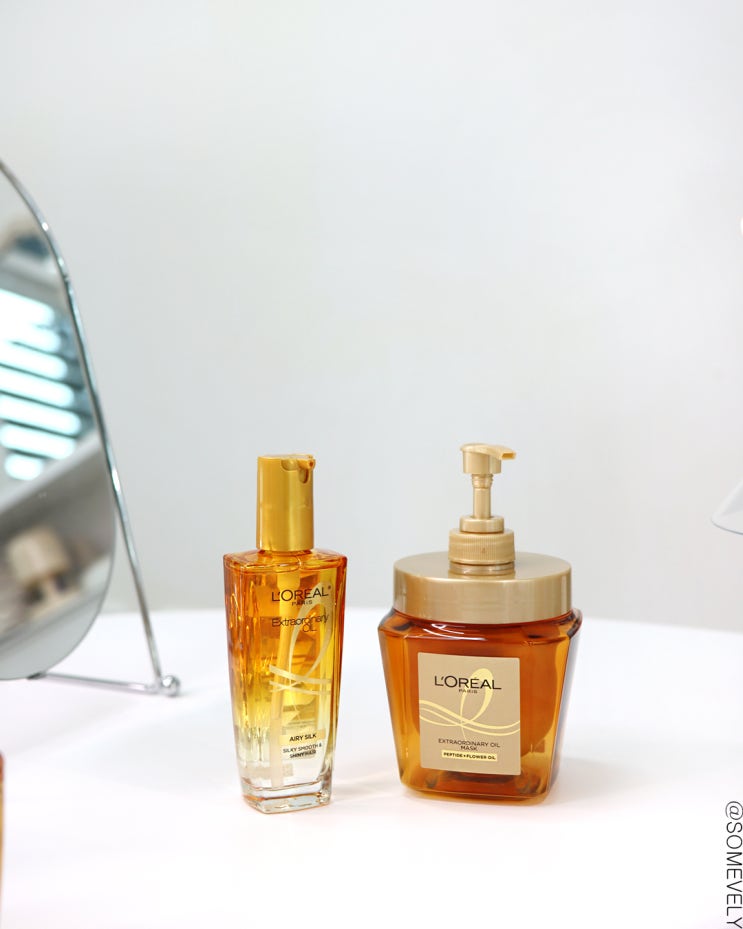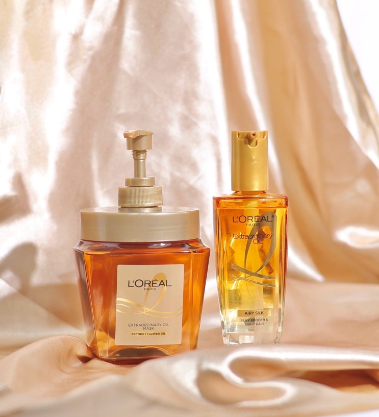 로레알파리 신제품 트리트먼트 엑스트라오디네리 오일 실크 마스크 팩 & 에어리 실크 헤어오일 2종으로 찰랑이는 머릿결 케어해봐