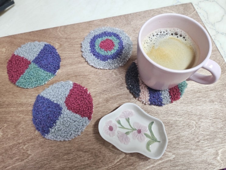 요번주에는 겨울동안 사용할 펀치니들 티코스터 세트를 만들어 보았어요 요부분이 앞모습이예요 ~~ 포근한 ...