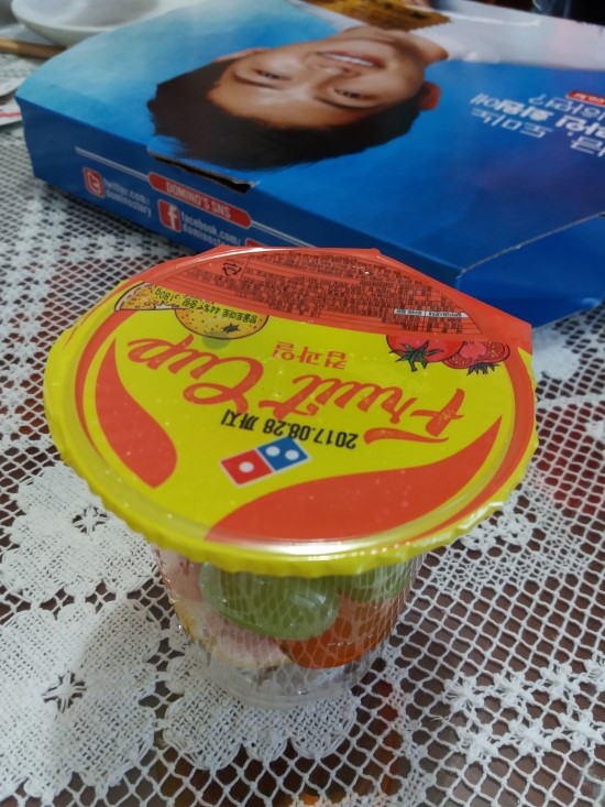 도미노피자 하프&하프와 컵과일 후기(2017-08-26) ㅎㅎ