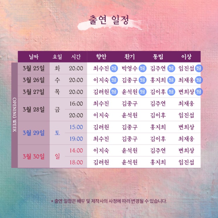「뮤지컬 라이카」 프리뷰 스케줄표 2025.3.24 ~ 3.16