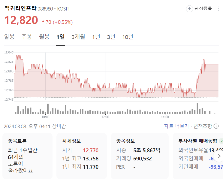 블로그 기록을 보니 3년 전 맥쿼리인프라 배당금 받은 후기를 적은 게시물이 있다. 그 뒤로 국장은 곤두박...