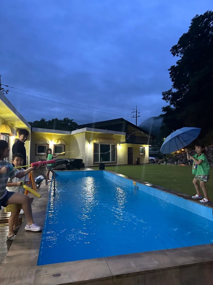 매일 덥다가 시원한 밤이면 물놀이 좀 하겠다고 땀 뻘뻘 흘리며 토종닭백숙 아빠 수영복 자랑 고민고민해서...