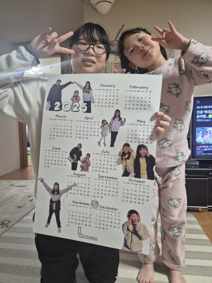 우리 가족의 사진이 담긴 2025 연간 달력이 완성되어 도착했어요. A2 사이즈의 연간 달력!! 아이들은 자신...