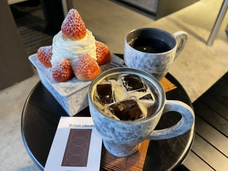 목말랐는데 디카페인 아이스아메리카노 원샷하고 라벤더레몬티 뜨끈하게 마시면서 딸기케이크 먹었는데 진...