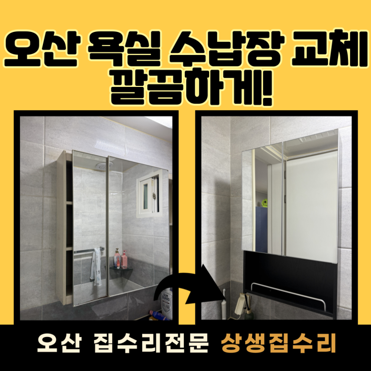 안녕하세요~! 오산 전 지역 욕실 수납장교체 전문 상생집수리 입니다. 저희는 동탄, 오산, 수원, 분당, 평...