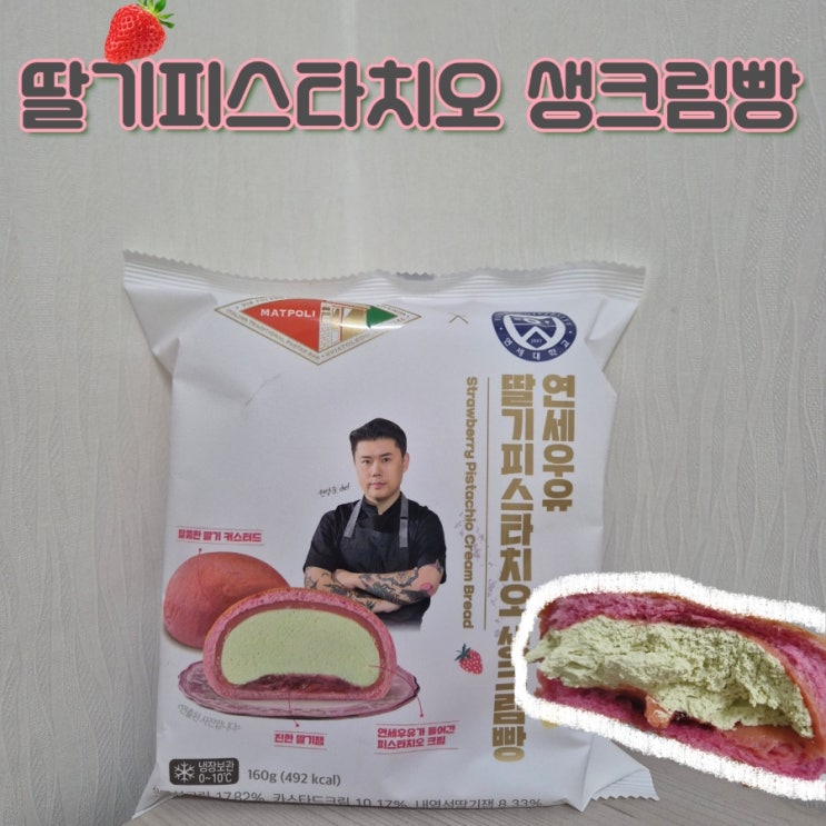 안녕하세요! 으뇽입니다 :) 연세우유에서 맛폴리 셰프님과 콜라보 해서 출시한 딸기 피스타치오 생크림 빵...