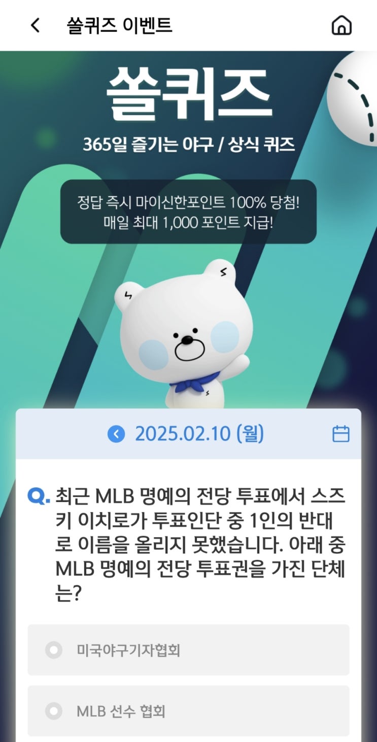 쏠퀴즈 최근 MLB 명예의 전당 투표에서 스즈키 이치로가 투표인단 중 1인의 반대로 이름을 올리지 못했...