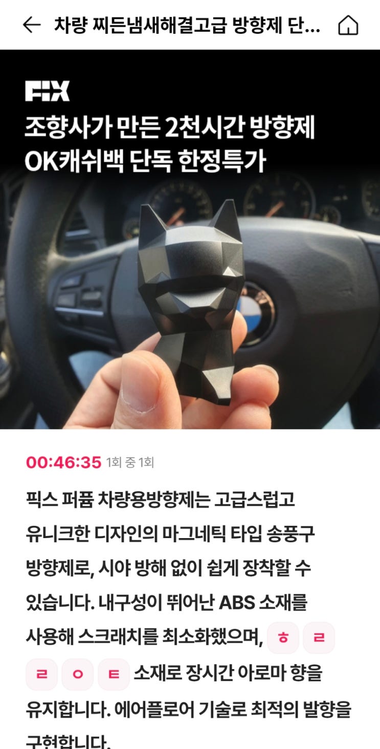 픽스 퍼퓸 차량용방향제 오퀴즈 ㅎㄹㄹㅇㅌ 정답 픽스 퍼퓸 차량용방향제는 고급스럽고 유니크한 디자인의 ...
