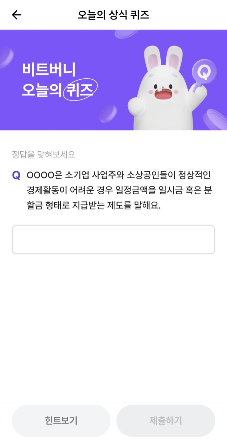 비트버니 오늘의 상식 퀴즈 ㄴㄹㅇㅅ 정답 OOOO은 소기업 사업주와 소상공인들이 정상적인 경제활동이 ...