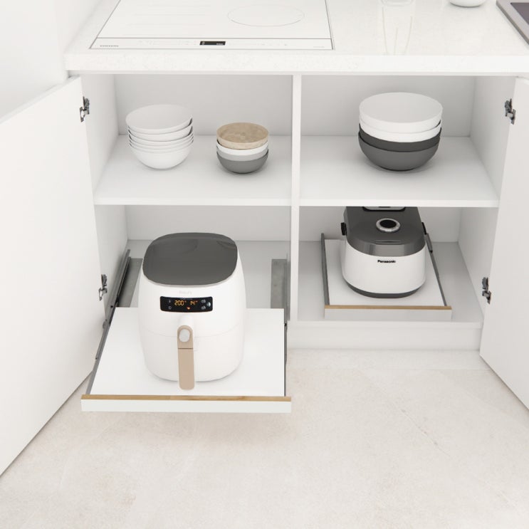 주방 슬라이딩선반 낼름 화이트 주문제작 오픈