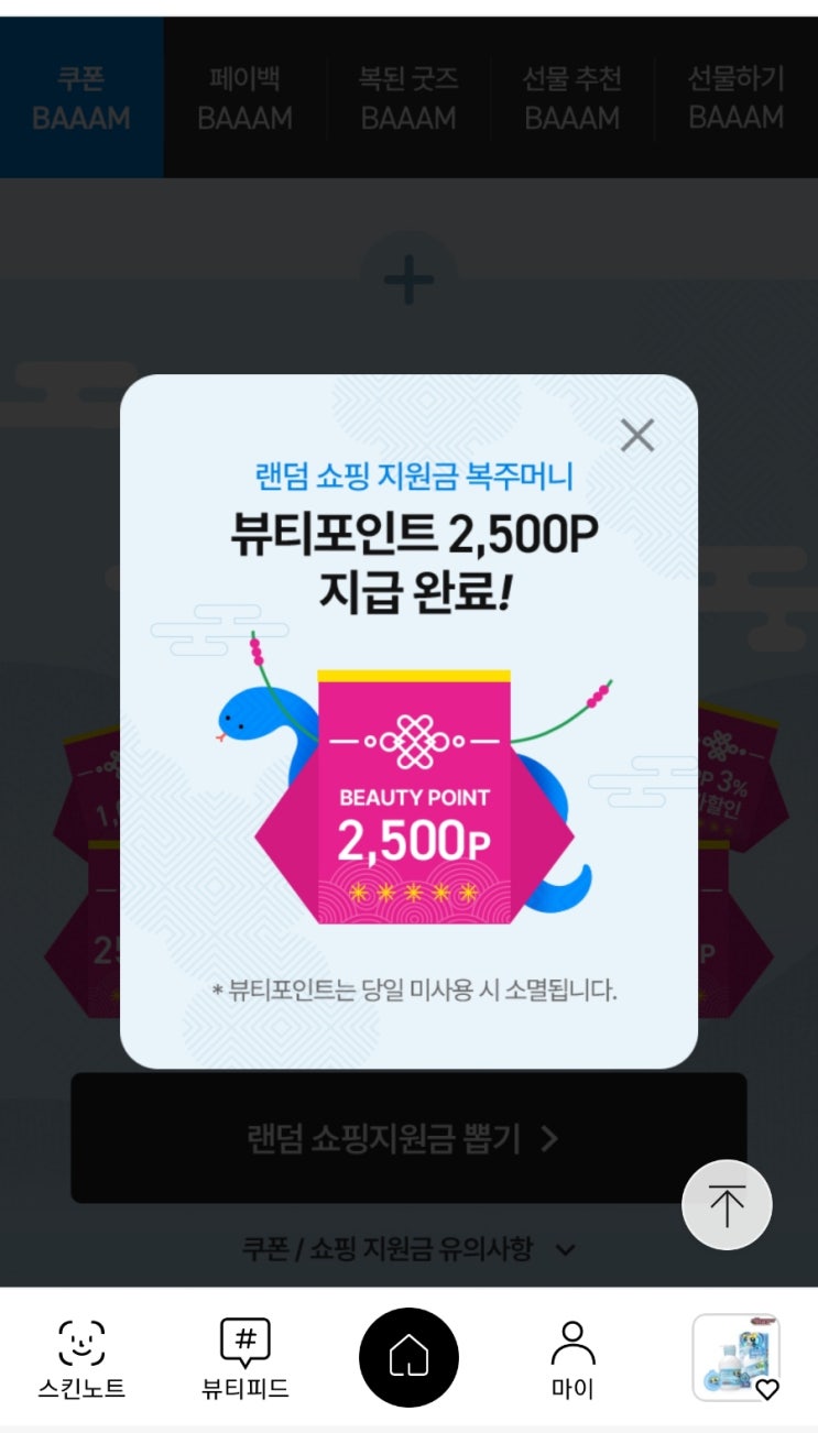 이니스프리 25주년 100% 당첨 랜덤뽑기 이벤트 * 일시 ; 25.01.16 ~ 01.25(매일 1회) * 무료배송권 / 뷰티 ...