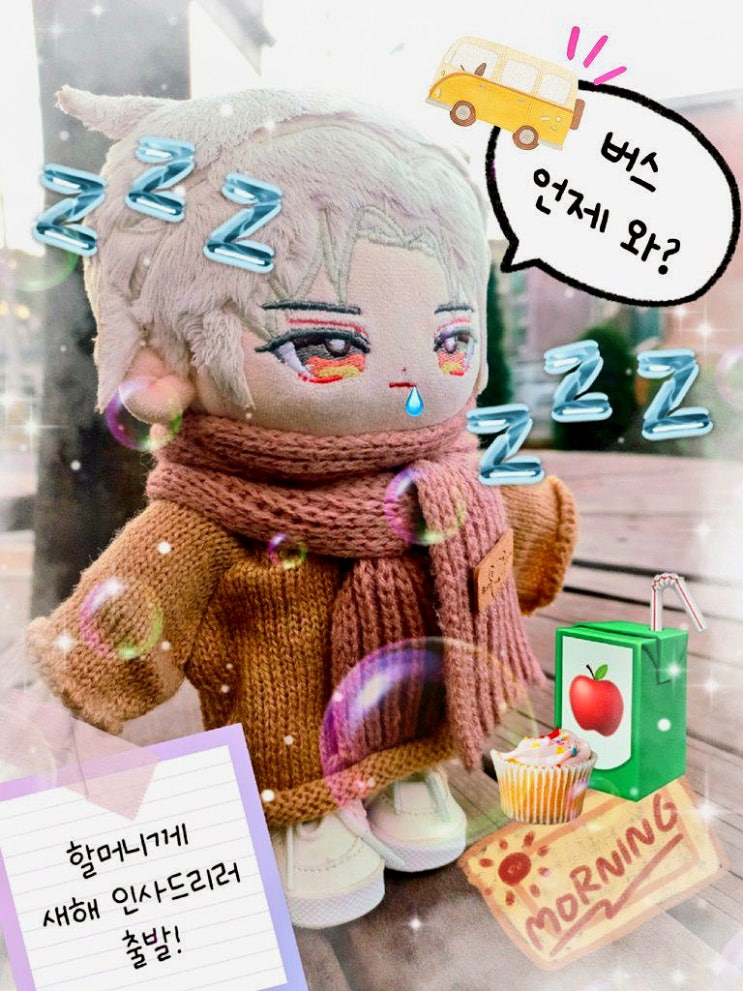 "어디 가냐고요? 친할머니께 새해 인사를 드리러 가는 길이에요! 이른 아침이지만 솜들이도 나가고 싶...