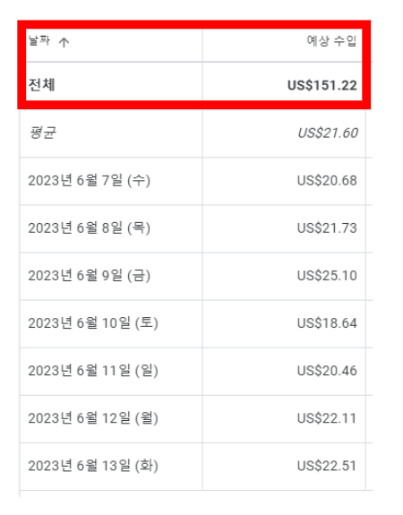 네. 드디어 일 평균 $30불을 찍었습니다. 개인적으로 6/10일까지 $30불을 잡아볼까?했었는데 택도 없는 기...