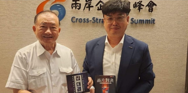 저자인 인치밍 대만 전 장관과 역자인 안동환 상무(어드밴텍) 반도체의 흥망성쇄가 국가 경제의 지표를 흔...