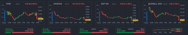 어제는 3대지수 모두 하락 마감했다. 다우지수는 0.90%, S&P500지수는 1.86%, 나스닥지수는 2.76% 하...