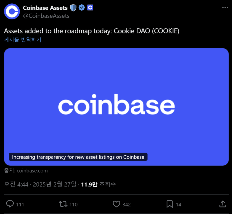 쿠키 다오 COOKIE 코인 코인베이스 상장 로드맵 호재