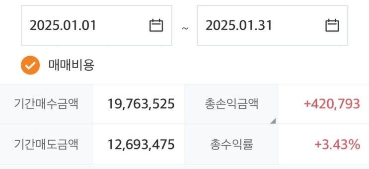 25년 1월 주식 매매 손익: + 432,488원 1월 국장 정말 미쳤었다고... 하루 오르면 하루 반납하고 미쳤던데...