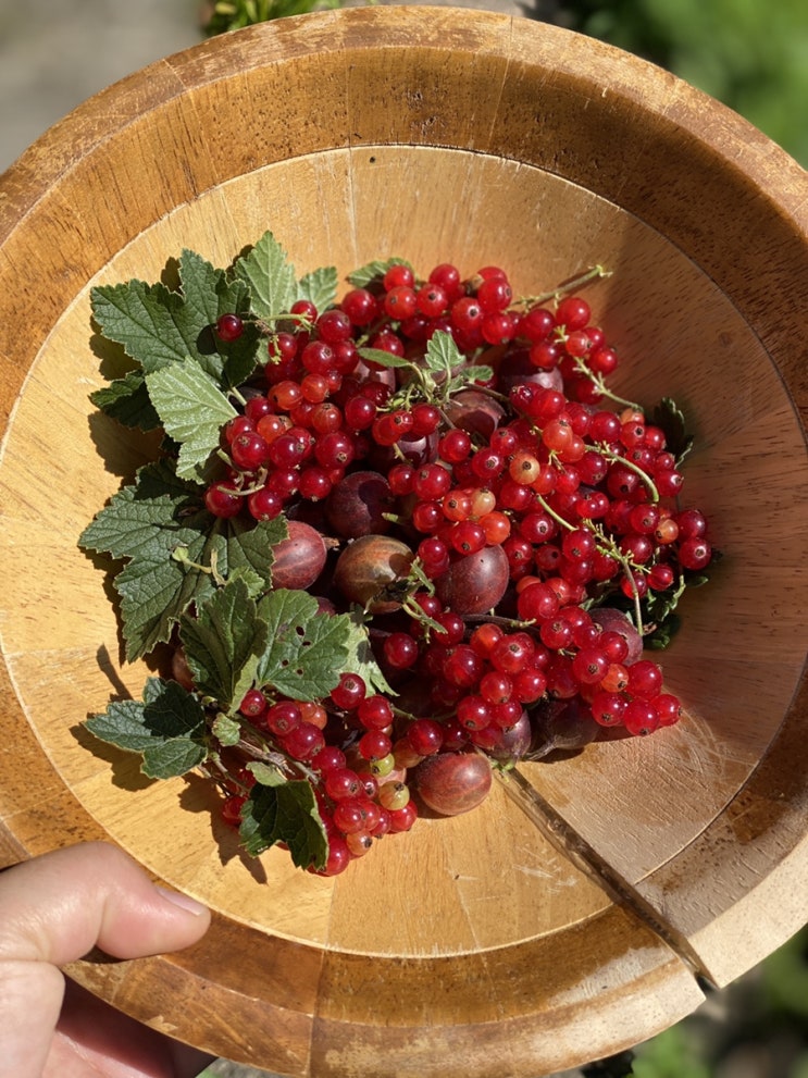 일년 중 해가 가장 긴 6월의 중순을 넘기면 우리 밭에 보석들이 달린다. 라즈베리, 구스베리, 레드 커런트....
