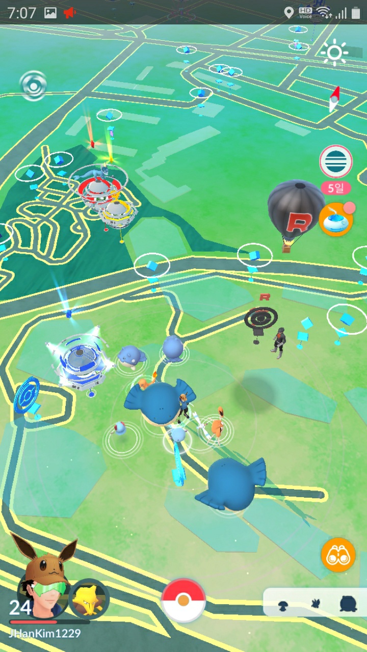 포켓몬고 접속!!! 야생의 푸크린!! 파괴광선이라... 최강의 팀이군! 이거 교채가 우선인데... 헉!!!! 그냥 ...