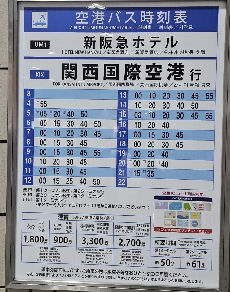 우메다에서 간사이 공항가는 버스