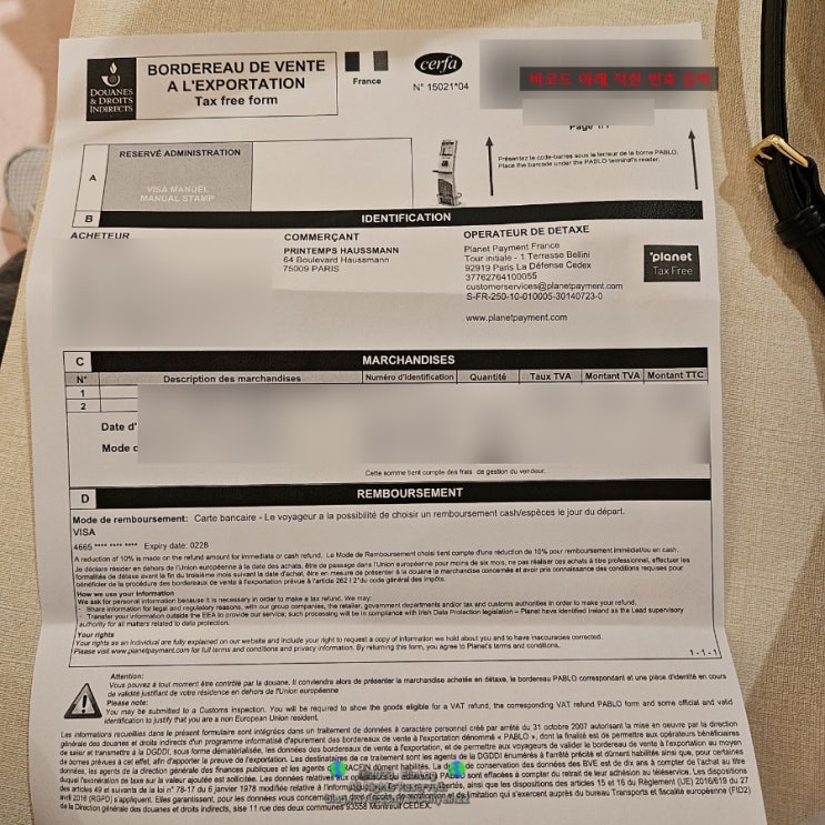파리 택스리펀/플라넷 택스리펀 조회, 환급기간(Planet)