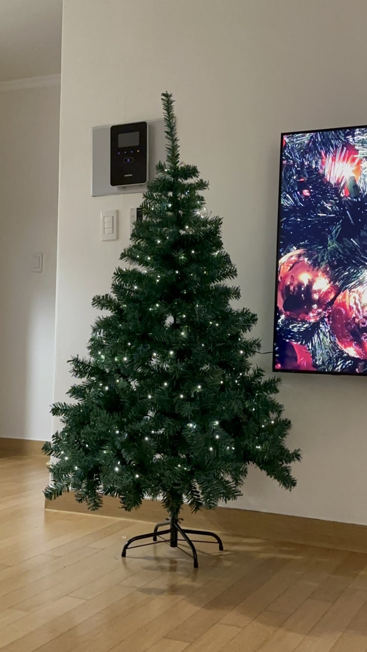 오늘의집 아웃팅 크리스마스 트리 150cm 구매 후기! + 다이소 오너먼트, 지네전구 장식