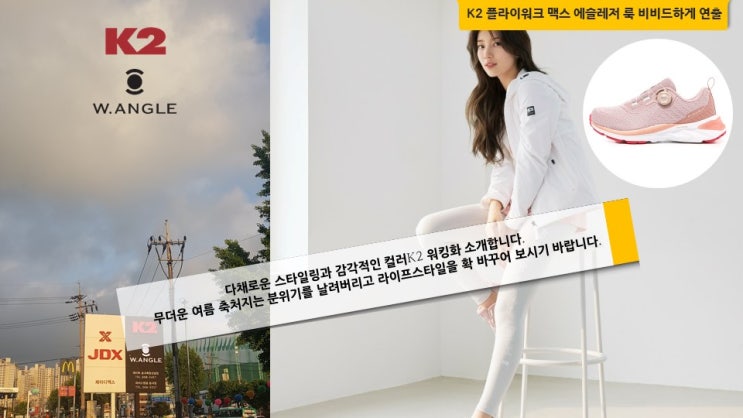 K2송내점 워킹화 K2 플라이워크 맥스 에슬레저 룩 비비드하게 연출