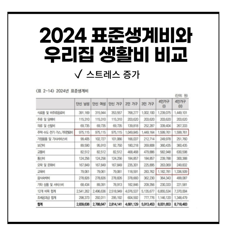 3인가족 생활비 정리(2024년 표준생계비)