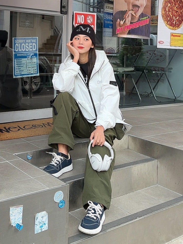 안녕 유지니에요 :3 오늘 바람막이 자켓 입기 딱 좋은 날씨였죠! 고프코어룩 스타일로 입기 좋은 봄 아우터...