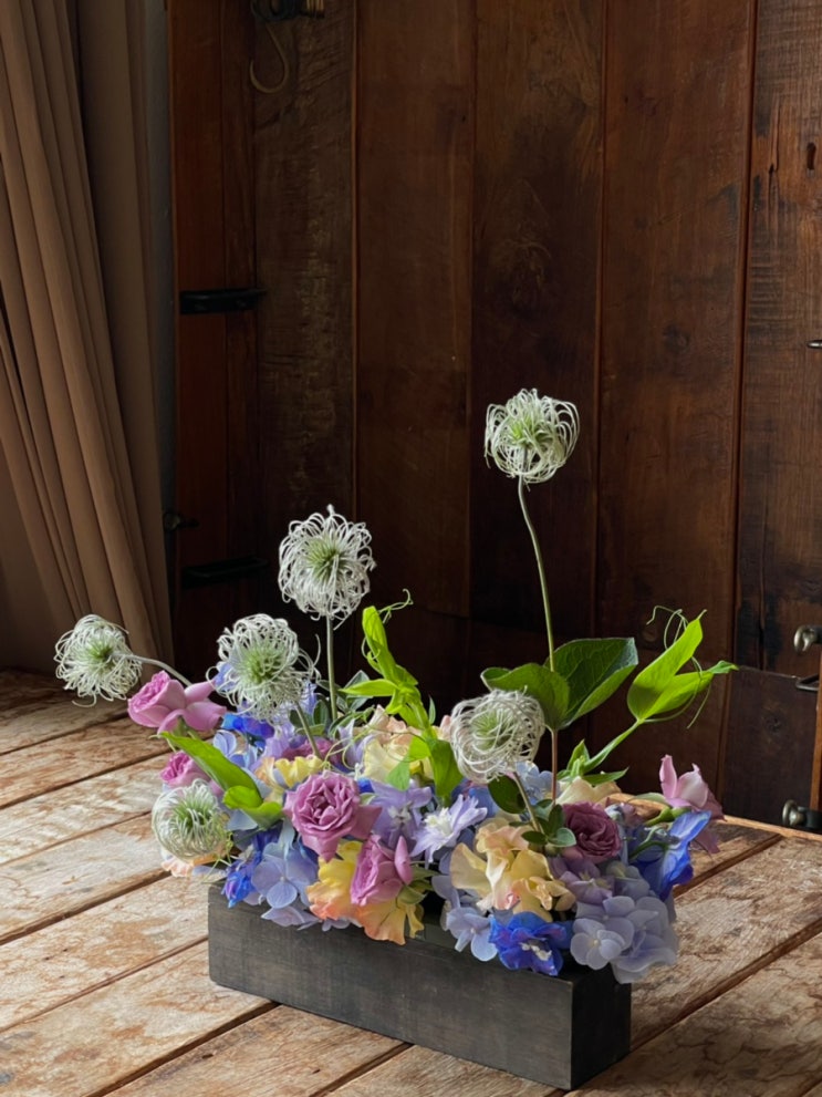 이번 수업도 지난 수업에 이어 센터피스를 만들었다! 롤케익 모양이여서 웨딩이나 행사 이벤트 테이블 장식...