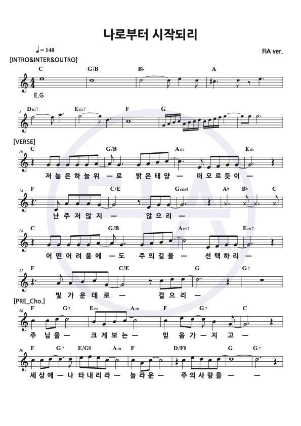 (찬양추천/C/잔잔/고백)나로부터 시작되리 (피아버전) / LET IT BEGIN WITH ME (FIA.ver)(공식악보)