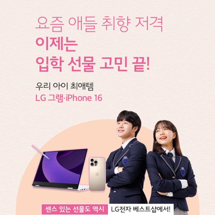 입학을 앞둔 ‘요즘 애들’ 마음을 사로잡는 비결? LG 그램 & iPhone16이 딱!