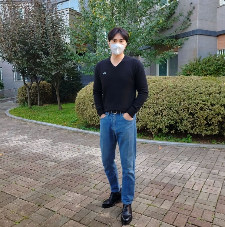 30대 남자 라코스테 브이넥 니트 리바이스 청바지 브랜드 워싱 몽블랑 벨트 온도별 옷차림 14도 15도 16도 ...