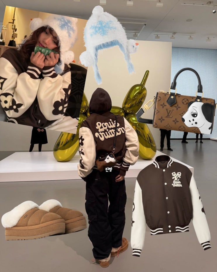 블랙핑크 리사 데일리룩 루이비통 바시티 자켓 어그 코디
