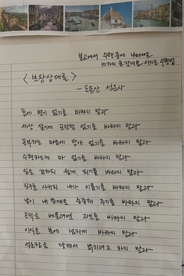 몸에 병이 없기를 바라지 말라 세상 살이에 곤란함 없기를 바라지 말라 공부하는 마음에 장애 없기를 바라...