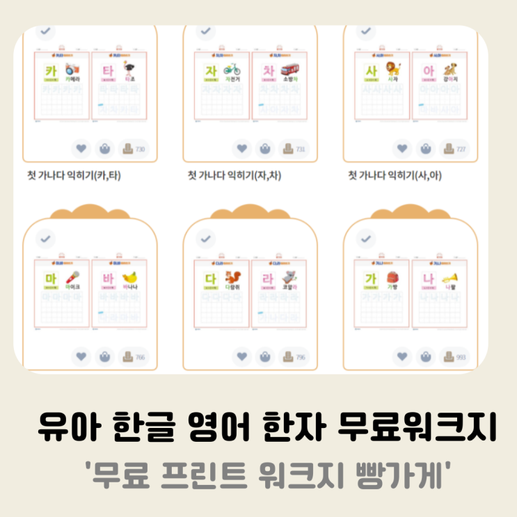 유아초등 한글 수학 영어 한자 무료워크지