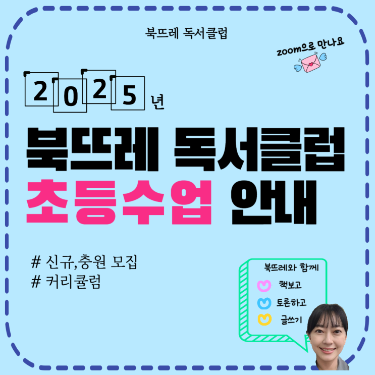 책의 정원에서 아이들과 마음껏 뛰노는 <북뜨레 독서클럽> 양샘입니다. 2025년 신규 및 충원 모집 안...