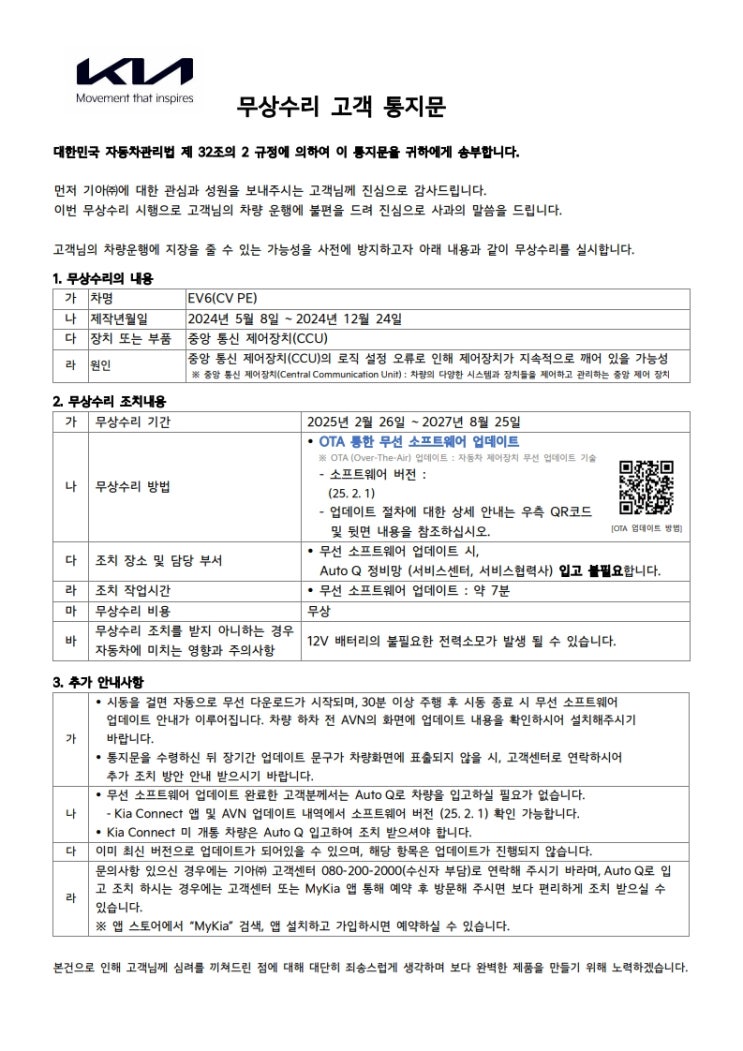 기아 CCU 무상수리 소프트 업데이트