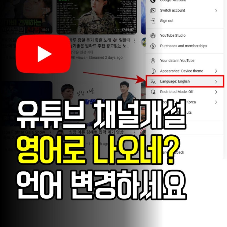 유튜브 채널개설 후 영어로 나와요! 언어 변경하는 방법