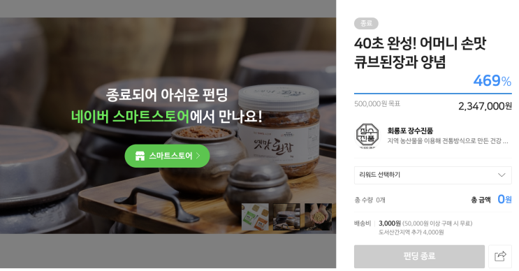 회룡포 장수진품, 네이버 우리동네 크라우드 해피빈 펀딩과 함께한 30일간의 여정 469% 달성(2025년 지원사업 도전)