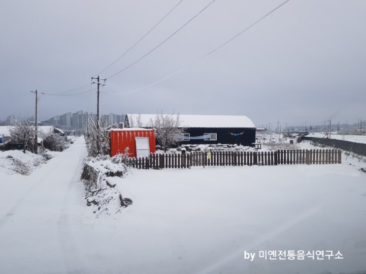 첫눈이 내린 날~ 미연전통음식연구소 소담한 정원은 온통 눈세상입니다 장독대에도 마지막 꽃을 피운...