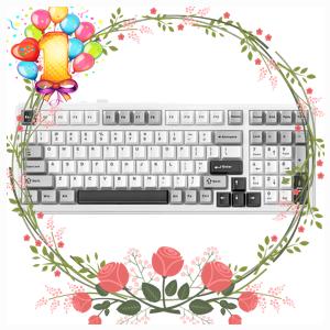 AULA F99 기계식 무선 키보드 V3, 화이트 + 그레이, 그레이우드축, 제조사축