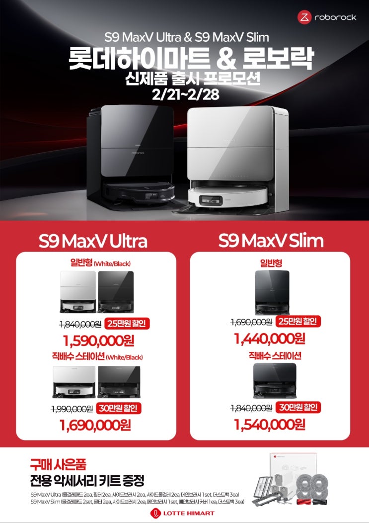 2월 21일 출시! 로봇청소기 신모델 로보락 S9 MaxV Ultra / S9 MaxV SLIM 평택세교하이마트에서