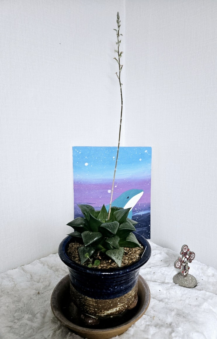 약 4주 전에 꽃대를 올리고 있던 아칸호의 모습입니다. 꽃대를 어찌나 높게 올리던지. 토막상식으로 꽃대를...