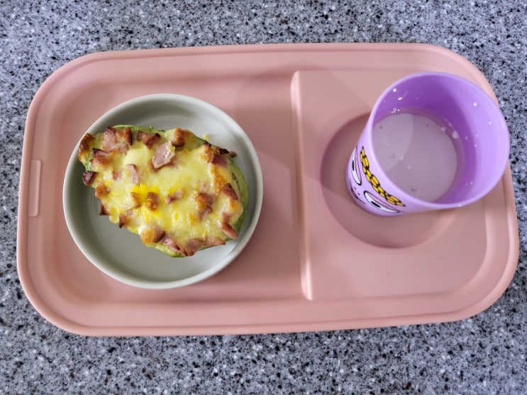 <아보카도 구이> 500.850kcal 3.004 아보카도 85g/메추리알 20g/비엔나 12g/슈레드치즈 10g 케토니아...